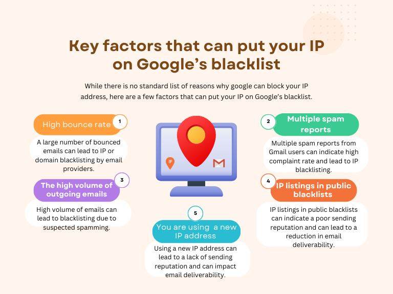 If your IP is flagged on the Google blacklist, instead of struggling to remove your email address from the list, it is far easier to stay away from these block lists in the first place.