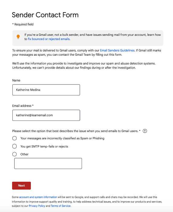 2. Once you are sure that you are following all the mentioned best practices, you need to fill out a Bulk Sender Contact Form, where you will have to follow the below steps: